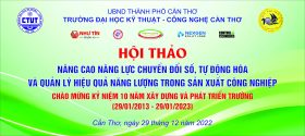 Sáng ngày 22/12/2022 vừa qua, Trung tâm Thí nghiệm – Kỹ thuật năng lượng – Chuyển giao công nghệ, khoa Điện – Điện tử – Viễn thông đã tổ chức Hội thảo chuyên đề “Nâng cao năng lực chuyển đổi số, tự động hóa và quản lý hiệu quả năng lượng trong sản xuất công nghiệp” với sự tham dự của Tiến sĩ Trương Minh Nhật Quang – Phó Hiệu trưởng Trường Đại học Kỹ thuật – Công nghệ Cần Thơ, Tiến sĩ Đoàn Thị Kiều Tiên, Trưởng Khoa Công nghệ Sinh hóa – Thực phẩm, Trưởng Ban tổ chức các Hội thi Hội thảo, Thạc sĩ Võ Minh Thiện Giám đốc Trung tâm Thí nghiệm – Kỹ thuật năng lượng – Chuyển giao công nghệ, đại diện hơn 20 Doanh nghiệp sản xuất, kinh doanh thiết bị điện, điện tử, tự động hóa cùng các thầy, cô các trường bạn và đại diện các lãnh đạo các Phòng Khoa, tập thể giảng viên và sinh viên khoa Điện – Điện tử – Viễn thông và Kỹ thuật cơ khí Trường Đại học Kỹ thuật – Công nghệ Cần Thơ.