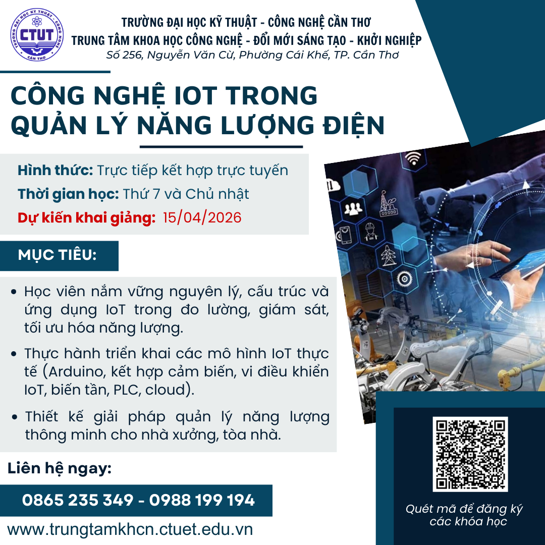 TUYỂN SINH KHÓA HỌC CÔNG NGHỆ IOT TRONG QUẢN LÝ NĂNG LƯỢNG ĐIỆN THÁNG 2/2026 CÔNG NGHỆ IOT TRONG QUẢN LÝ NĂNG LƯỢNG ĐIỆN TUYỂN SINH 25 Tháng 2, 202625 Tháng 2, 2026 Nguyễn Văn Hậu11Leave a Comment on TUYỂN SINH KHÓA HỌC CÔNG NGHỆ IOT TRONG QUẢN LÝ NĂNG LƯỢNG ĐIỆN THÁNG 2/2026